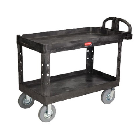 Heavy Duty Utility Cart, 55"L x 26"W x 33-1/4"H, 750 lb. total capacity, (2) lipped shelves, (4) pneumatic casters, assembly required, black, Made in USA