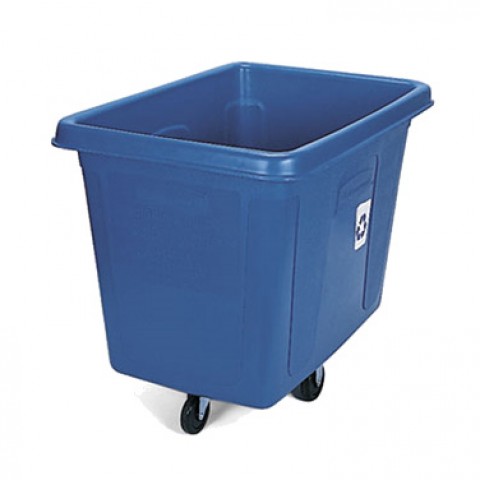 Recycling Cube Truck, mobile, 43-3/4"L x 31"W x 37"H, 16 cu. ft. size (500 lb. capacity), with "We Recycle" symbol, open top, metal frame design, dark blue, HACCP, Made in USA