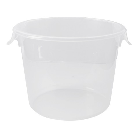 Storage Container, 6 quart, 10" dia. x 7-5/8"H, round, stackable, deep, easy-grip handles, -20°F/-34°C to 212°F/100°C temperature range, dishwasher safe, polypropylene, clear, NSF, Made in USA (contact Rubbermaid for broken case information)