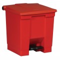 Step-On Container, 8 gallon, 16-1/4" x 15-3/4"W x 17-1/8"H, hands free, heavy-duty pedal, tight fitting overlapping lid, puncture resistant, plastic construction, red, FM & CSFM approved, OSHA, Made in USA