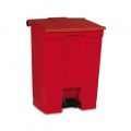 Step-On Container, 18 gallon, 19-3/4" x 16-1/8"W x 26-1/2"H, hands free, heavy-duty pedal, tight fitting overlapping lid, puncture resistant, plastic construction, red, FM & CSFM approved, OSHA, Made in USA