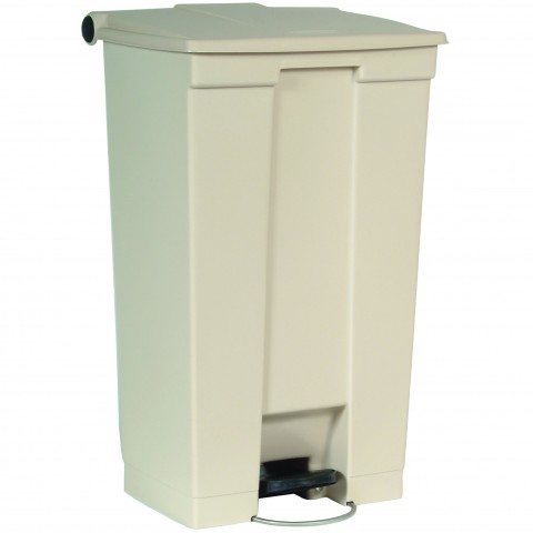 Step-On Container, 23 gallon, 20"W x 16"D x 32-1/2"H, mobile, heavy-duty pedal, tight fitting overlapping lid, puncture resistant, plastic construction, beige, Made in USA