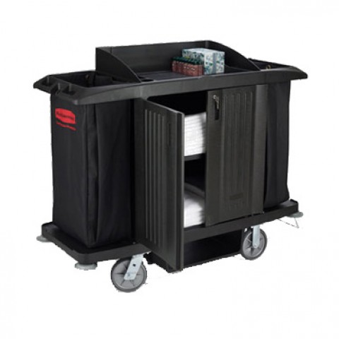 Housekeeping Cart, 60"L x 22"W x 50"H, with doors and vinyl bag, black, Made in USA