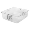 Space Saving Container, 2 quart, 8-3/4"L x 8-5/16"W x 2-11/16"H, square, -40°F/-40°C to 212°F/100°C temperature range, measurement graduations in red & blue, smooth surface, break-resistant clear polycarbonate, dishwasher safe, clear, FDA, NSF, Made in USA (contact Rubbermaid for broken case information)