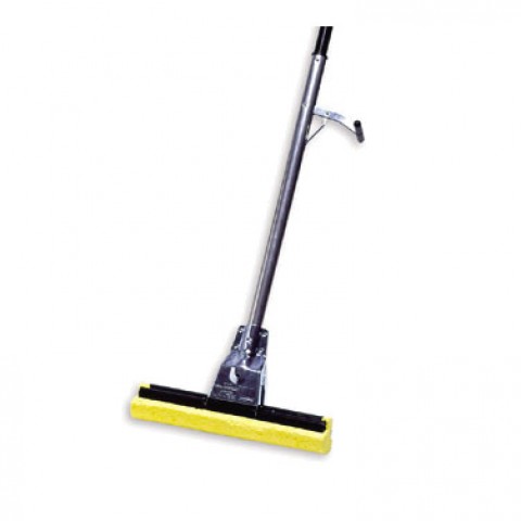 Steel Roller Sponge Mop, 12", cellulose head, front-pull lever on mop handle, bronze