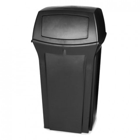 Ranger® Classic Container, 35 gallon, 21-1/2" x 41"H, outdoor, permanently attached top, black, FM & CSFM approved, ADA compliant, Made in USA