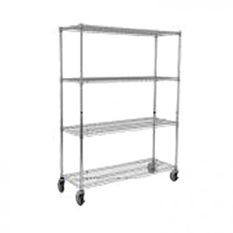 Safety Storage Rack, 50"W x 18"D x 67"H, (4) shelves, each shelf holds (8) 40 cup safety storage bins (9G6000 WHT), (4) 100 cup safety storage bins (9G5700 WHT) or (2) 200 safety storage bin (9G5800 WHT), safety positioning locators to securely transport and store, chrome finish, NSF (CANNOT BREAK CASE)