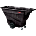 Structural Foam Tilt Truck, standard duty, 850 lb. capacity, 1/2 cu. yd., 57-3/8"L x 26-7/8"W x 33-7/8"H, seamless one-piece body with reinforced lip, frameless, leak-proof, rust, dent, chip/peel resistant, easy maneuvering/handling, 10" inset wheels, 4" non marking plate casters, black, Made in USA (4 week lead time)