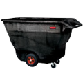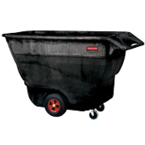 Structural Foam Tilt Truck, standard duty, 1250 lb. capacity, 1 cu. yd., 70-3/4"L x 33-1/2"W x 42-1/4"H, seamless one-piece body with reinforced lip, frameless design, leak-proof, rust, dent, chip/peel resistant, easy handling/maneuvering, one person controlled dumping, 12" inset wheels, 5" non marking swivel casters, black, Made in USA (4 week lead time)