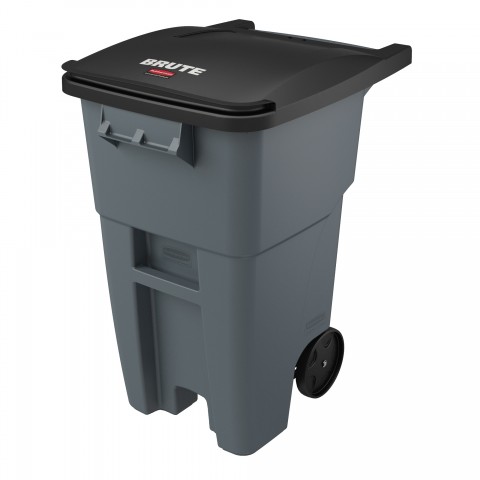 BRUTE® Roll-Out Container, 50 gallon, 28-1/2" x 23-2/5" x 36-1/2" H, with lid, gray , Made in USA
