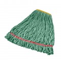 Web Foot® Wet Mop, medium, 4-ply cotton/synthetic blend, 1" headband, looped end, bacterial resistant, for absorbing spills, green, Made in USA