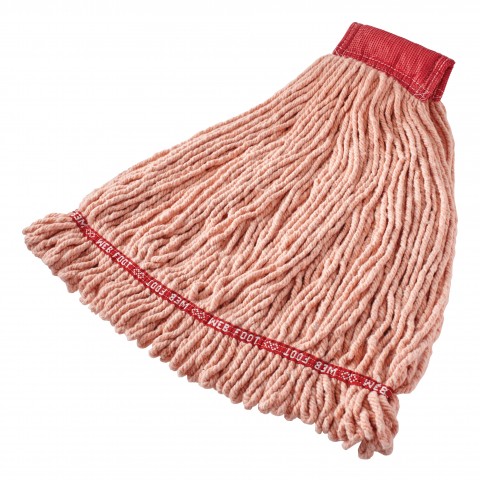 Web Foot® Wet Mop, large, 4-ply cotton/synthetic blend, 5" headband, looped end, bacterial resistant, for absorbing spills, orange, Made in USA