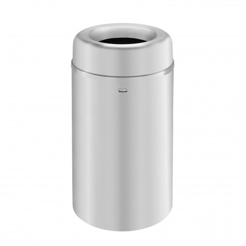Crowne Collection Waste Receptacle, 30 gallon, 20" dia. x 34-1/2"H, open top, open top, aluminum construction, rigid plastic liner, indoor, satin aluminum (8 weeks lead time), Made in USA