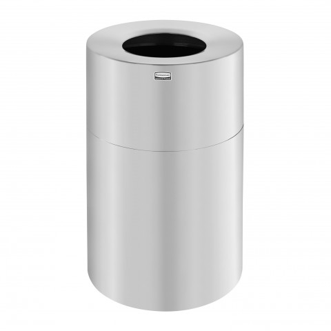 Designer Line™ Aluminum Waste Receptacle, 55 gallon, 24" dia. x 35"H, open top, aluminum construction, rigid plastic liner, indoor, satin aluminum