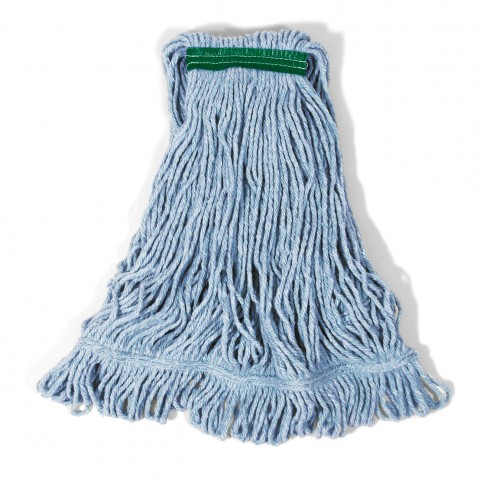 Super Stitch® Mop Head, medium, 4-ply blend cotton/synthetic blend, 1" headband, looped end, for absorbing spills, blue, Made in USA