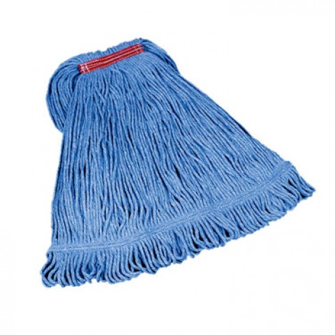 Super Stitch® Mop Head, large, 4-ply blend cotton/synthetic blend, 1" headband, looped end, for absorbing spills, blue, Made in USA