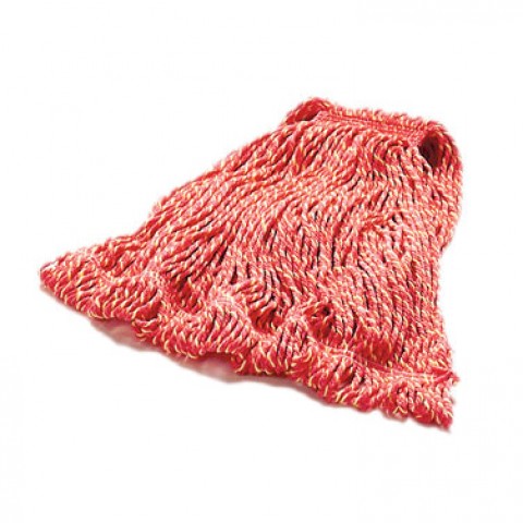 Super Stitch® Mop Head, large, 4-ply blend cotton/synthetic blend, 1" headband, looped end, for absorbing spills, red, Made in USA