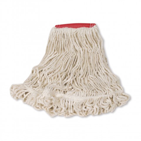 Super Stitch® Mop Head, large, 4-ply cotton/synthetic blend, 5" headband, looped end, for absorbing spills, white, Made in USA