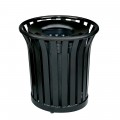 Americana Waste Receptacle, 36 gallon, 29" dia. x 32-1/2"H, open top, steel slat construction, rigid plastic liner, outdoor, black, ADA, Made in USA