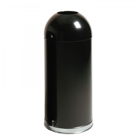 Waste Receptacle, 15 gallon, 15" dia. x 35"H, round top, rigid plastic liner, steel construction, indoor, black (6 weeks lead time), Made in USA