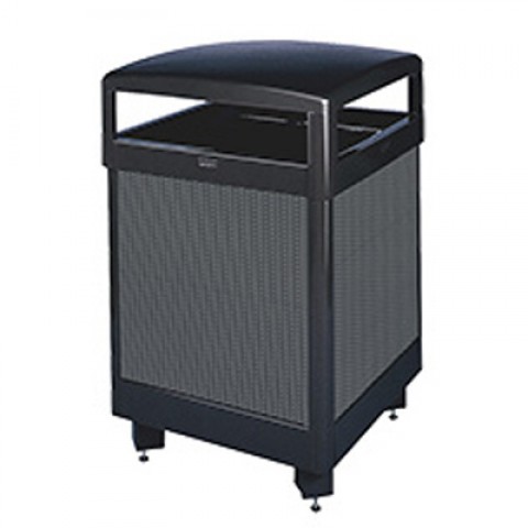 Dimension Trash Receptacle, 48 gallon, 26" square x 40"H, hinged top, side opening, square, rigid plastic liner, outdoor, black anthracite (12 weeks lead time), Made in USA