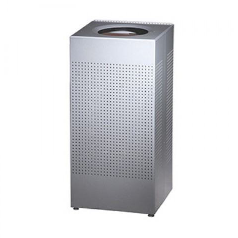 Silhouette Indoor Receptacle, 16 gallon, 14-3/4" x 14-3/4" x 30"H, square, open top, retainer band with leak proof plastic rigid liner, silver metallic, steel (6 weeks lead time), Made in USA