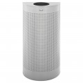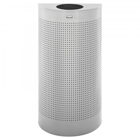 Silhouette Indoor Receptacle, 9"L x 18"W x 32"H, 12 gallon, half round, open top, retainer band with leak proof plastic rigid liner, silver metallic, steel (1 week lead time), Made in USA