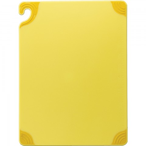 Saf-T-Grip® Cutting Board, 15" x 20" x 1/2", anti-slip grip corners, food safety hook, integrated ruler, dishwasher safe, co-polymer, yellow, NSF