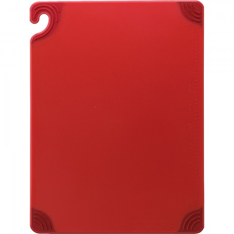 Saf-T-Grip® Cutting Board, 18" x 24" x 1/2", anti-slip grip corners, food safety hook, integrated ruler, dishwasher safe, co-polymer, red, NSF