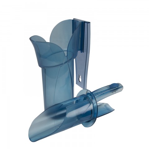 Saf-T-Scoop® Guardian System, adjustable to 8, 16, or 24 oz., domed, with (2) Germ Guards™, includes: 1 Saf-T-Scoop®, 1 Guardian™ holder with removable drainage cap, and 1 set mounting tools, dishwasher safe, polycarbonate, blue, NSF