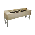 Underbar Sink, four compartment, 72"W x 18-3/4"D x 33"H, 18/304 stainless steel, 10" wide x 14" front-to-back x 10" deep compartments, 13" drainboards on left & right, 3"H backsplash, (2) sets of 4" OC splash mount faucet holes, 20/304 stainless steel apron on front & sides, 1-1/2" drains, galvanized steel legs & side crossbracing with adjustable bullet feet, NSF