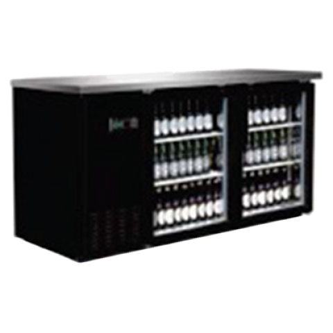 Back Bar Cooler, two-section, 61-1/10"W x 24-2/5"D x 36-1/5"H, 13.5 cu. ft. capacity, (2) glass doors, stainless steel top, electronic thermostat with LED display, temperature range 33°F - 41°F, white powder coated interior with stainless steel floor, black powder coated exterior, side mounted self-contained refrigeration, (4) 5" casters, UL EPH Classified, cULus Classified, CE, ETL-Sanitation