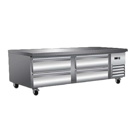 Chef Base, 74"W x 31-9/10"D x 26"H, (4) drawer, electronic thermostat, temperature range 33 - 41°F, LED digital display, auto defrosting & evaporation, stainless steel exterior, side mounted self-contained refrigeration, (4) casters (2 braked), cULus Classified, UL EPH Classified, CE