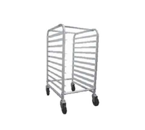 Pan Rack, 10-tier, 20-7/8"W x 26-1/4"D x 38"H, 1" square tube frame, aluminum construction, (4) 5" non-marking swivel poly casters, NSF, KD