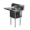 Serv-Ware - Sinks - 12" Deep Economy Sink 1 Bowl - 36.5"W x 25.5"D x 45.5"H, 18/304 stainless steel, 16" wide x 20" front-to-back x 12" deep compartment, 18" drainboard on left, 11-3/4"H backsplash, 8" OC splash mount faucet holes, raised rolled edges on front & sides, 3-1/2" basket drains with 1-1/2" outlets, stainless steel gussets, galvanized legs with adjustable plastic bullet feet, NSF
