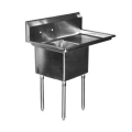 Serv-Ware - Sinks - 12" Deep Economy Sink 1 Bowl - 38.5"W x 23.5"D x 45.5"H, 18/304 stainless steel, 18" wide x 18" front-to-back x 12" deep compartment, 18" drainboard on right, 11-3/4"H backsplash, 8" OC splash mount faucet holes, raised rolled edges on front & sides, 3-1/2" basket drains with 1-1/2" outlets, stainless steel gussets, galvanized legs with adjustable plastic bullet feet, NSF