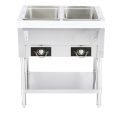 Serv-Ware Electric Steam Table, 2 Open Wells, 44"W x 29.5"D x 33.5"H overall dimensions, temperature range 120°F–200°F, 115v/60/1, 12.5 Amps, 1500 Watts, stainless steel construction, 1 Year Parts & 90 Days Parts & Labor warranty.