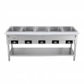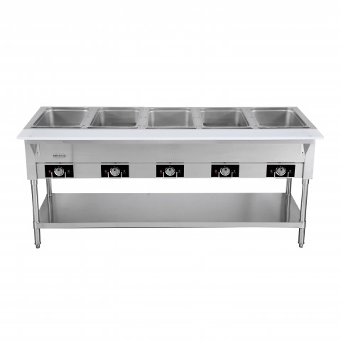 Serv-Ware - Electric Cooking - 5 Open Well Electric Steam Table - Dimensions: 72.3" W x 29.5" D x 33.5" H - Temperature Range: 120°F – 200°F - Amps: 16 - Voltage: 220-240 - Hz: 60 - Phase: 1 - Materials: Stainless steel construction - Warranty: 1 Year - Parts; 90 Days - Parts & Labor