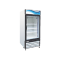 Refrigerated Merchandiser, one-section, 25"W x 26"D x 61-4/5"H, 12 cu. ft. capacity, (1) hinged self-closing & lockable double-pane glass door, (3) adjustable epoxy coated shelves, electronic thermostat, LED digital display, temperatures between 33°F & 41°F, auto-defrost, illuminated top panel, white powder-coated steel interior & exterior, mounted on wheels, bottom mounted self-contained refrigeration, UL EPH Classified, cULus Classified, CE