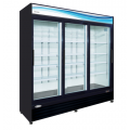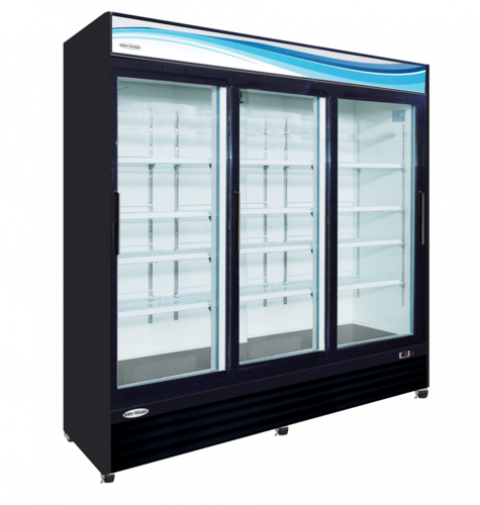 Serv-Ware - Refrigeration - 3 Door 72 cu. ft. Black Slide Merchandiser Refrigerator - Dimensions: 81" W x 30.7" D x 81.5" H - Exterior Material: Black Powder Coated Steel - Interior Material: White Powder Coated Steel - Insulation Material: CFC Free Foam - Shelf Material: Vinyl Coated Wire - # of Shelves: 4 per Door - Voltage: 115 - Amps: 7 - Hz: 60 - Phase: 1 - Temperature Range: 33°F – 41°F - Refrigerant + Charge oz.: R290 / 5.29 oz. - BTU/H: 3200 - Defrosting: Every 6 Hours - Horsepower: 1/2 - Storage Capacity: 72 cu. ft. - Warranty - Parts on Labor on Entire Unit: 3 Years - Warranty - Compressor, Part Only: 5 Years