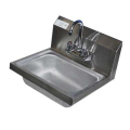 Serv-Ware - Sinks - S/S Hand Sink NO Splash Guards - Dimensions: 17" W x 15" D x 13.5" H - Materials: 18 Gauge, 304 Series Stainless Steel Top - Bowl 14" W x 10" D x 5.5" H, 7.75" backsplash, includes 4" gooseneck faucet with wrist blade handles, 1.15" basket strainer, mounting bracket included, 18/304 stainless steel construction, NSF