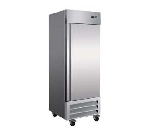 Serv-Ware - Refrigeration - 1 Door 19 cu. ft. Freezer - Dimensions: 26.8" W x 25.6" D x 82.3" H - Exterior Material: 430 Stainless Steel - Interior Material: 430 S/S Walls with 304 S/S Floor - Insulation Material: CFC Free Foam - Shelf Material: Epoxy Coated Zinc - # of Shelves: 3 - Voltage: 115 - Amps: 5 - Hz: 60 - Phase: 1 - Temperature Range: -10°F – 0°F - Refrigerant + Charge oz.: R600a / 3.53 oz. - BTU/H: 2000 - Defrosting: Every 6 Hours - Horsepower: 5/8 - Storage Capacity: 19 cu. ft. - Warranty - Parts on Labor on Entire Unit: 3 Years - Warranty - Compressor, Part Only: 5 Years