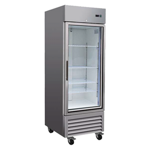 Serv-Ware - Refrigeration - 1 Door 23 cu. ft. Refrigerator - Dimensions: 26.8" W x 32.7" D x 82.7" H - Exterior Material: 430 Stainless Steel - Interior Material: 430 S/S Walls with 304 S/S Floor - Insulation Material: CFC Free Foam - Shelf Material: 3 Epoxy Coated Wire - # of Shelves: 3 - Voltage: 115 - Amps: 3 - Hz: 60 - Phase: 1 - Temperature Range: 33°F – 41°F - Refrigerant + Charge oz.: R290 / 3 oz. - BTU/H: 1670 - Defrosting: Every 6 Hours - Horsepower: 1/5 - Storage Capacity: 23 cu. ft. - Warranty - Parts on Labor on Entire Unit: 3 Years - Warranty - Compressor, Part Only: 5 Years