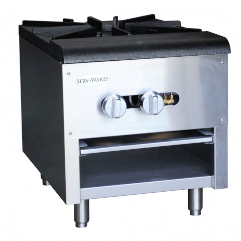Serv-Ware - Gas Cooking - Single Stock Pot Stove - Natural Gas - Dimensions: 18" W x 24.6" D x 20.4" H - BTU/H: 110,000 (NG) / 85,000 (LP) per Burner - # of Burners: 1 - Gas Line: 3/4 - W.C. for Natural Gas: 4 in. - W.C. for LP: 10 in. - Warranty: 1 Year