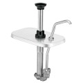 FP-200 FOUNTAINETTE PUMP, dispenses thin syrups or flavor concentrates from a 2 qt. (7-1/2") shallow fountain jar (sold separately), 1 oz. maximum serving, which can be reduced in 1/8 oz. increments with provided collars, angled discharge tube accommodates use in a 22° slanted fountainette, stainless steel, NSF