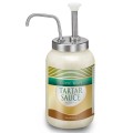 CP-G GALLON JAR PUMP, dispenses thick, ambient condiments or thicker craft sauces from a gallon jar with 120 mm (4-13/16") diameter over threads, dispenses 1 oz. per stroke, which can be reduced in 1/8 oz. increments, using the supplied gauging collars, non-threaded stainless steel lid (sets over jar threads), stainless steel pump, NSF