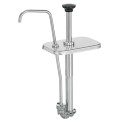 CP-F, FOUNTAIN JAR PUMP, dispenses thick condiments and thicker craft sauces from a 3-1/2 qt. (10") deep fountain jar (sold separately), 1-1/4 oz. maximum serving, which can be reduced in 1/8 oz. increments with provided collars, stainless steel, NSF