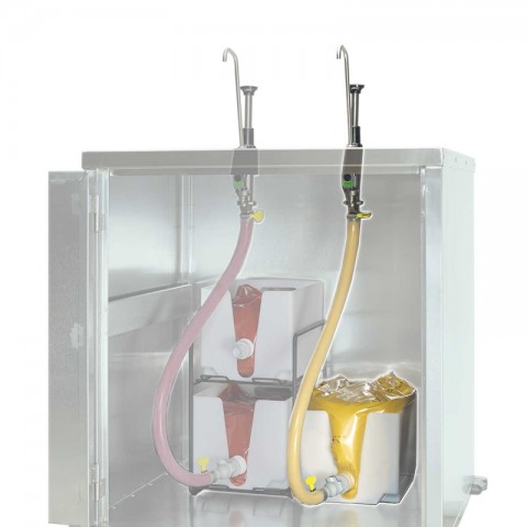 CP-RP, REMOTE DISPENSING SYSTEM, SINGLE PUMP, SINGLE POUCH, manually operated remote dispensing system, with flush-mounted stainless steel pump, draws from a single condiment or salad dressing pouch below the counter, quick connect feature makes change outs cleaner and adapts to both 16 mm fitment (1-1/2 gallon) and 38 mm connector (3 gallon) pouch styles, serves 1 oz., which can be reduced in 1/8 oz. increments with supplied collars, includes hose, connector and pouch support, small countertop cutout for pump connection is necessary, disassembles completely for cleaning, clean-in-place certified, NSF