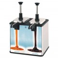 EZT, TWIN EZ-TOPPER™, FUDGE & CARAMEL TOPPING WARMER, DUAL POUCH, thermostatically-controlled, dry heat (non-water bath), dispenses from 48 oz. fudge and caramel topping pouches with 16 mm center fitment, while warming a second of each in reserve, includes supports for occasions when pre-heating a second pouch is not needed, stainless steel pumps, serve 1 oz., which can be reduced in 1/8 oz. increments with supplied collars, includes magnetic hot fudge and caramel merchandising signs, stainless steel, 400 watts, 120v/60/1-ph, 3.3 amps, cord, NEMA 5-15P, cULus, NSF