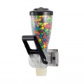 DPD, DRY PRODUCT DISPENSER, SINGLE 1 LITER, serves from a clear, 1 liter hopper, with 14 portion settings, 2 oz. max, 1/4 oz. minimum, adjustable in 1/8 oz. increments, single dispenser mounting bracket needs just 5" of linear vertical space, dispensing lever operation is ADA Compliant (no tight grasping or twisting rotation required), includes wide opening, lift-off lid and removable, silicone discharge fitting, stainless steel, BPA free, NSF